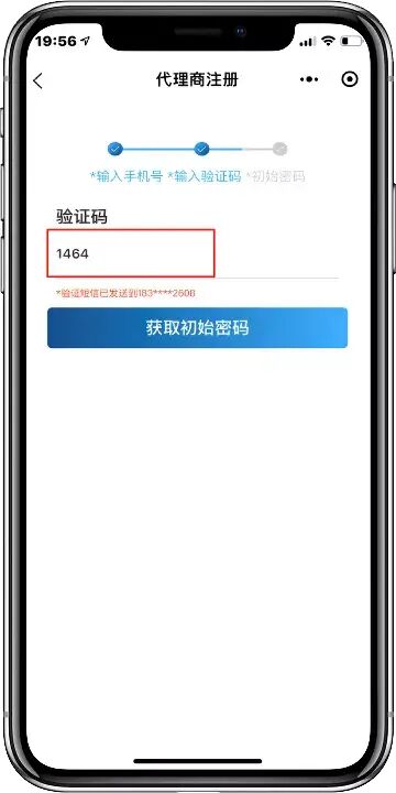 4、输入验证码,获取初始密码,初始登录密码及支付密码均为手机号后六位